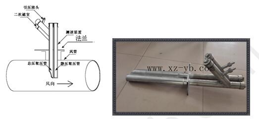 我公司开发的XZZL-EQ-1型锅炉风速风量测量装置基于靠背测量原理,原理图如下: